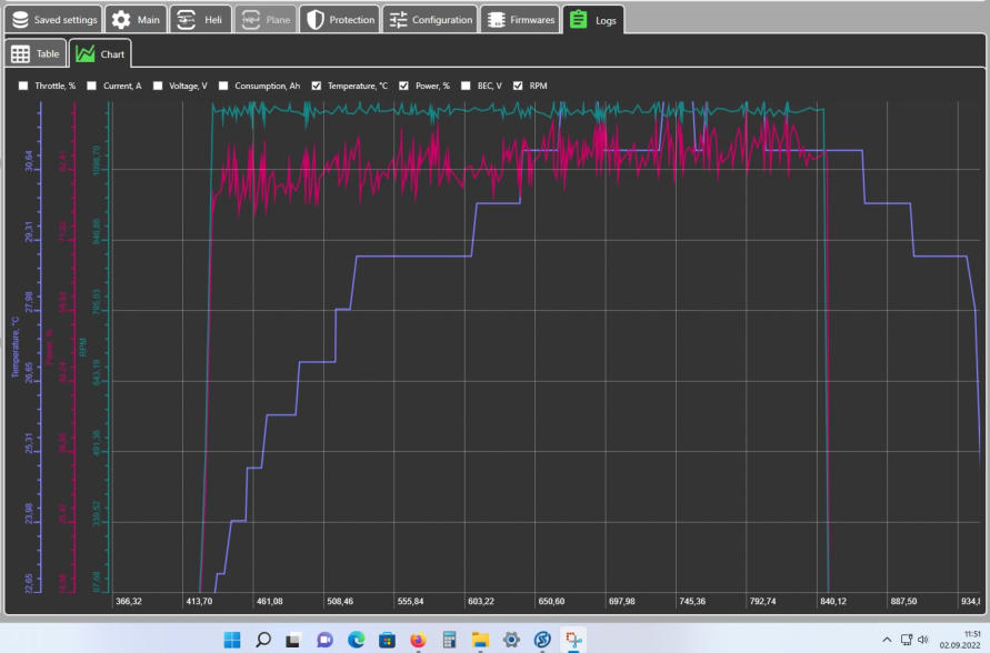 Geflogen wird das ganze Gespann mit 1250 Umdrehungen am